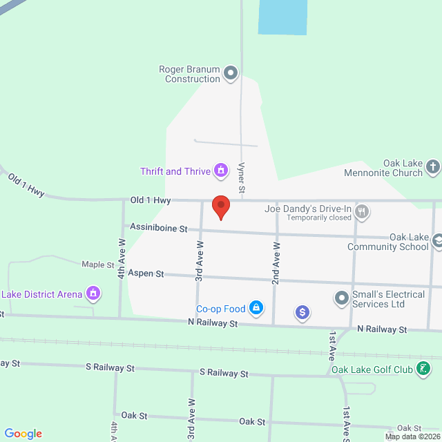 Next to and East of Oak Lake Day Care Centre 1 on Assiniboine St., a white portable building. Park in front.